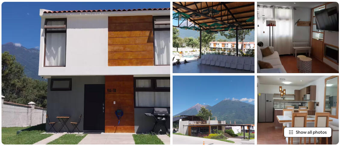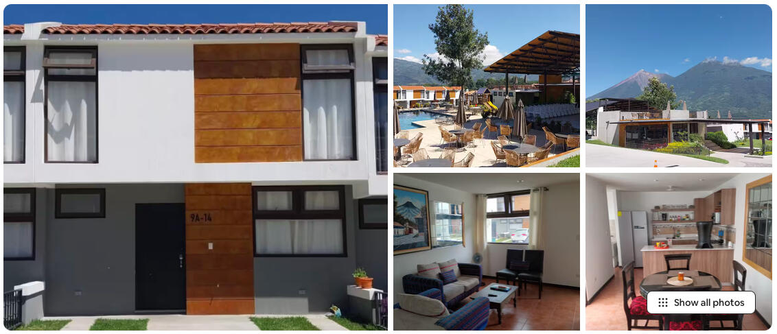 A cozy two-level home in a private gated community on the way to Alotenango. Ideal for families or groups, featuring comfortable bedrooms, a fully equipped kitchen, garden, and parking. Enjoy shared amenities such as a pool and recreational areas in a safe, peaceful setting—just minutes from Antigua and nearby attractions.