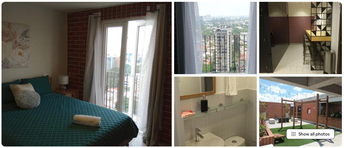 A modern and spacious apartment with 3 bedrooms and 2 bathrooms, ideal for families, groups, or business travelers. Warm interiors, laundry, parking, and an unbeatable location in Zona 10, close to restaurants, shopping centers, and corporate areas. Comfort and practicality in a safe, exclusive neighborhood.